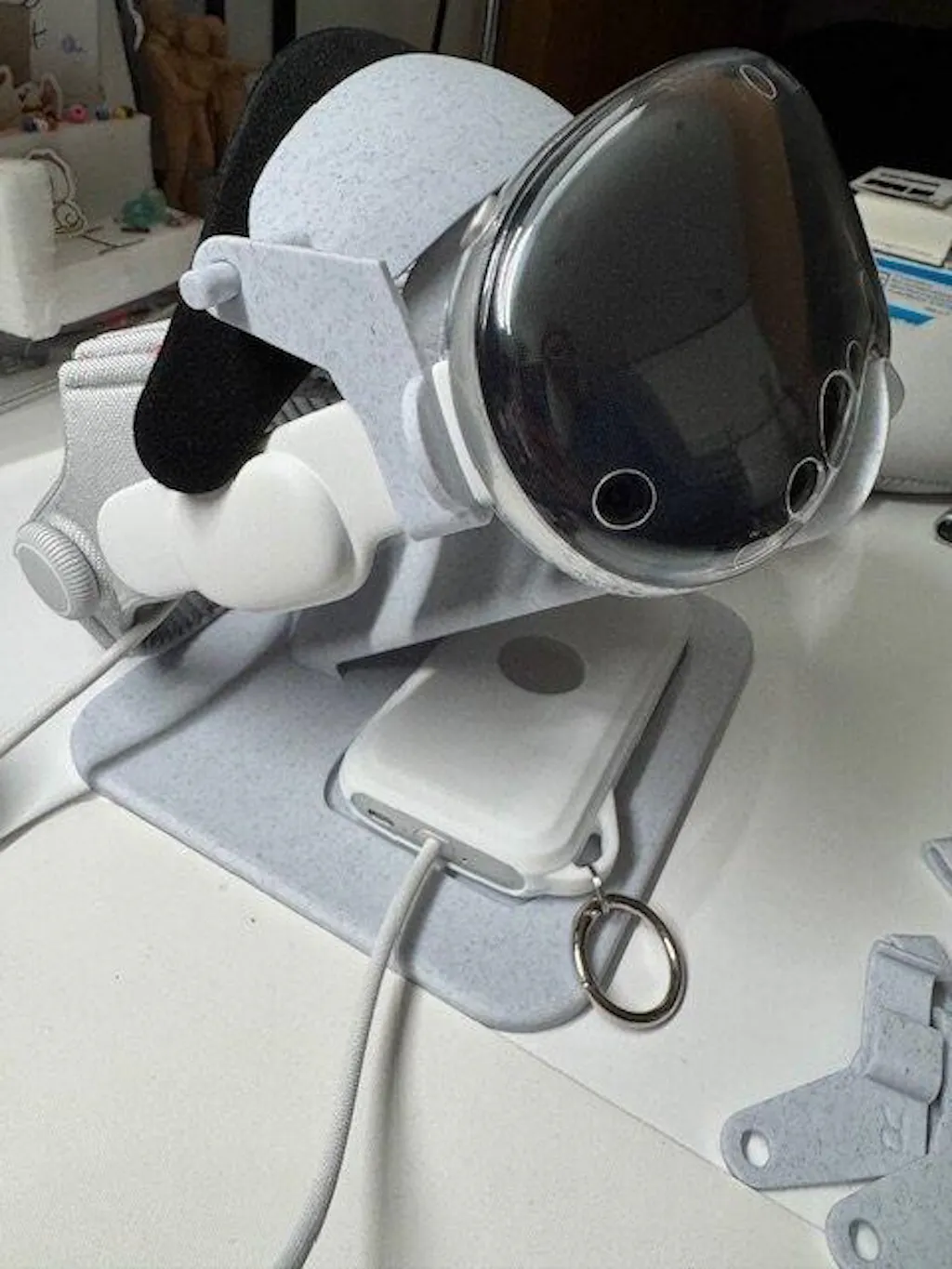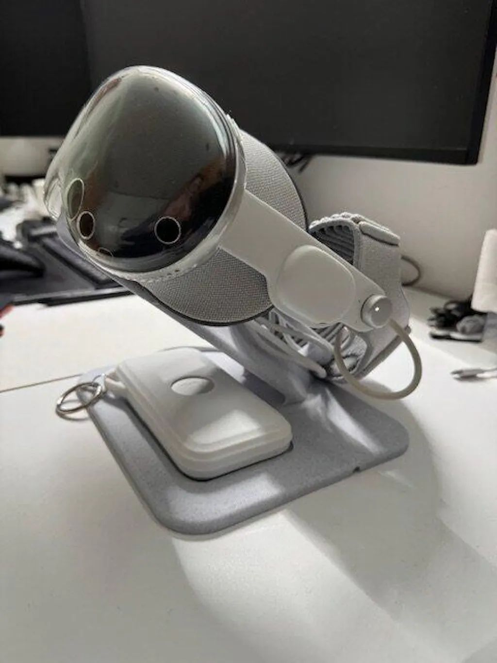 It feels stable on the desk, holds the headset securely, and genuinely makes the Vision Pro look like a proper design piece rather than just tech sitting on a table. Looks fantastic on my workstation. Would recommend adding some rubber/silicon feet to avoid sliding.